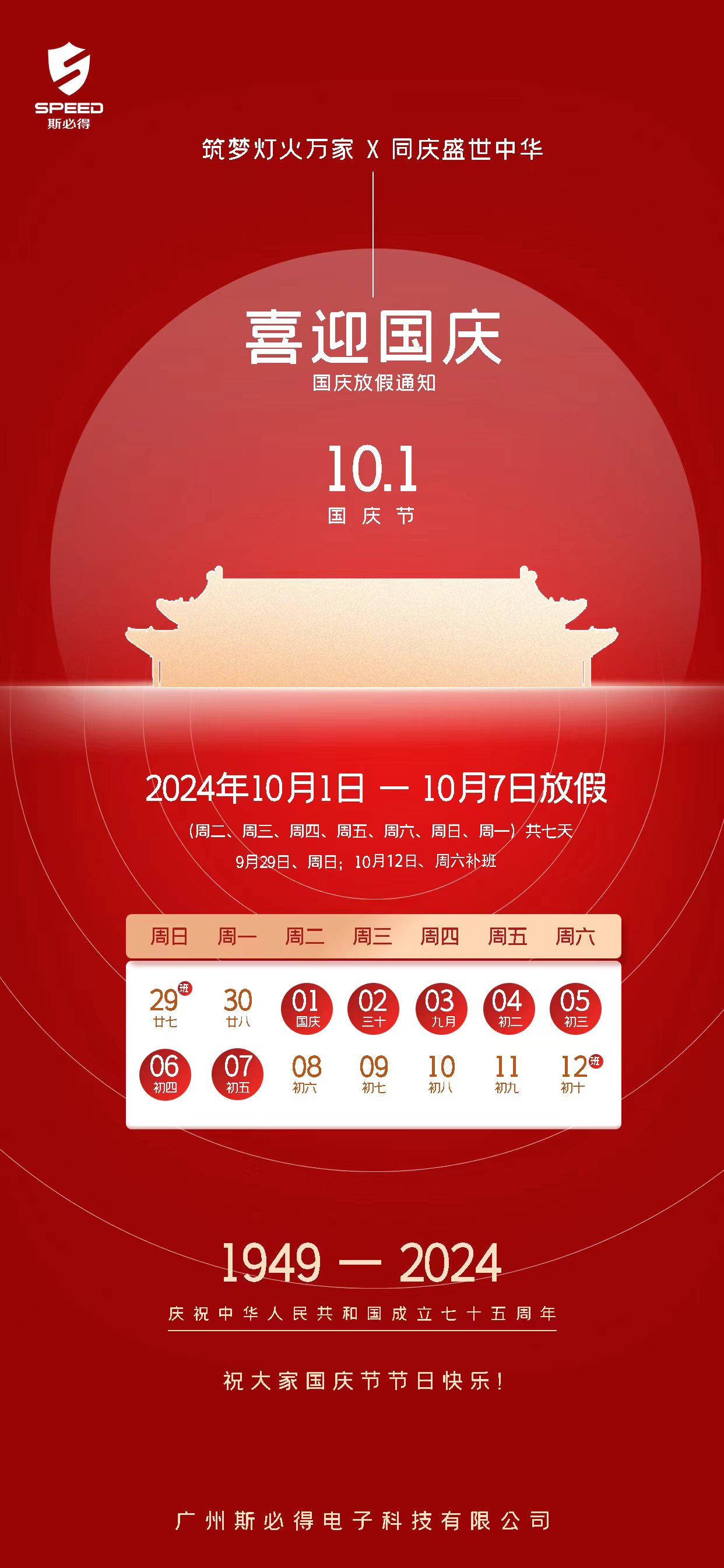 值此舉國同慶、盛世歡歌之際,茄子视频免费观看謹向您致以最誠摯的節日問候!廣州茄子视频免费观看響應《關於2024年部分節假日安排的通知》,國慶節放假時間為2024年10月1日-10月7日,為確保國慶假期期間各項業務的有序進行,特此就發貨、施工安裝及調試等相關安排作出以下說明及安排,為您帶來更加貼心與高效的服務體驗。