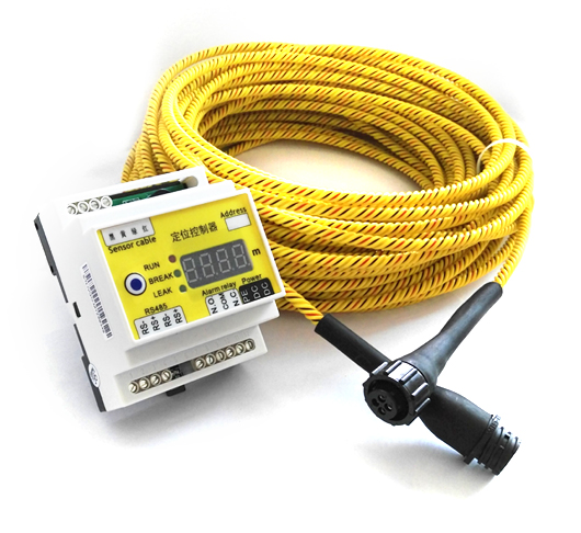 當感應線被泄漏物浸泡,則二根導電聚合物(黑色傳感線)之間被短接,並使所測電流值發生變化,控製器根據歐姆定理,電阻與長度有關,通過測算,就能得到發生故障泄漏點的位置
